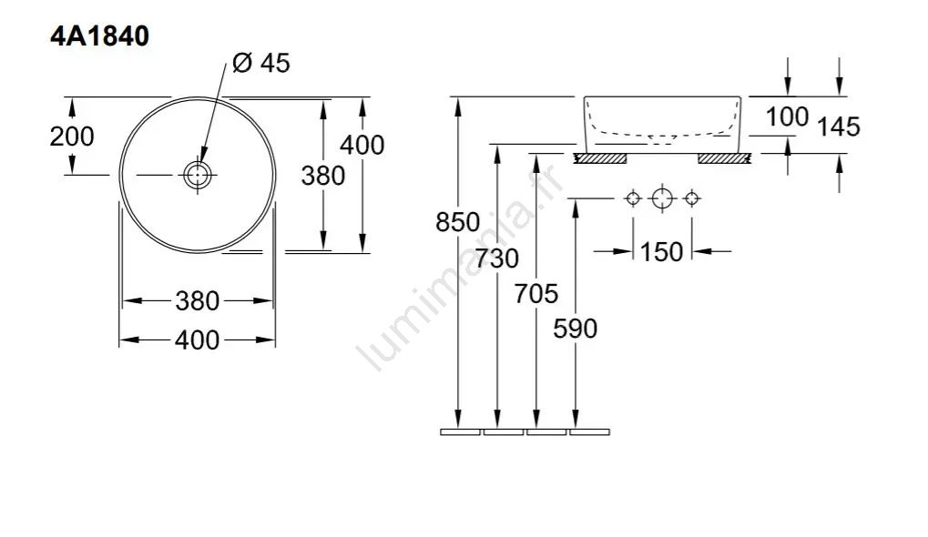Villeroy & Boch 4A1840R1 - Lavabo à poser COLLARO Ø 40 cm céramique/blanc