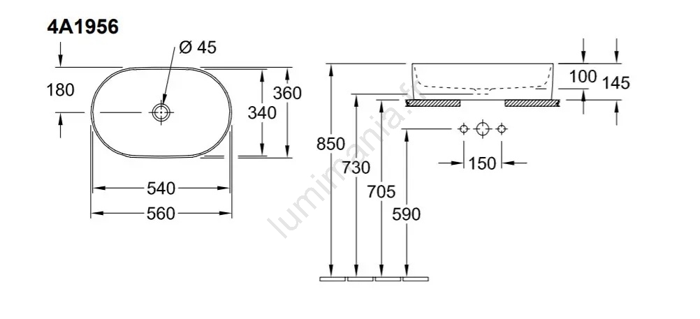 Villeroy & Boch 4A195601 - Vasque à poser COLLARO 56 x 36 cm, céramique, blanc
