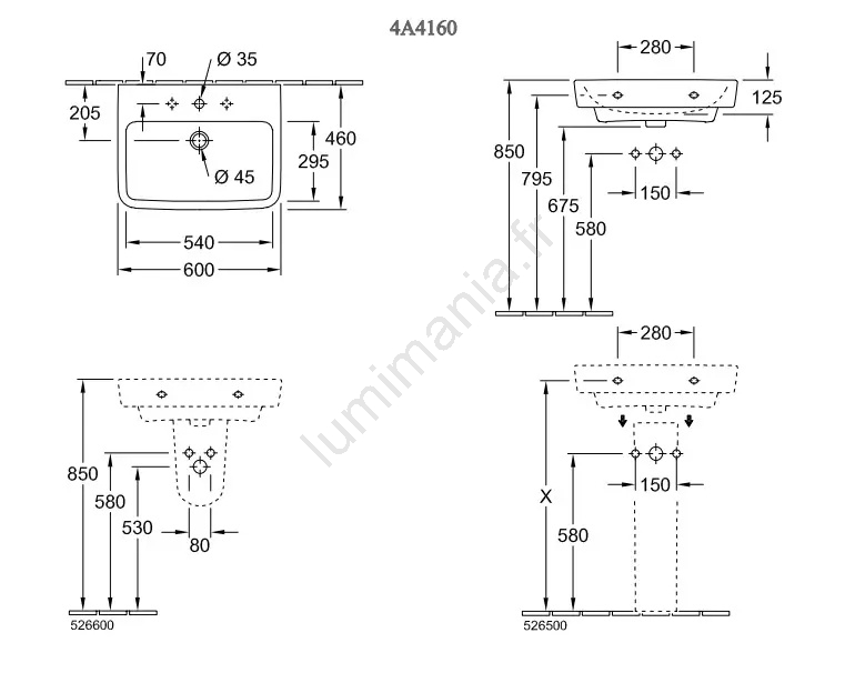 Villeroy & Boch 4A416001 - Lavabo suspendu O.NOVO 60x46 cm céramique/blanc