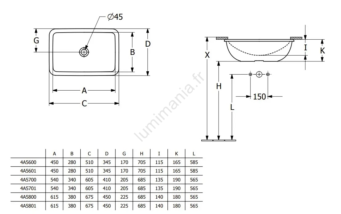 Villeroy & Boch 4A5601R1 - Lavabo encastré LOOP&FRIENDS 45 x 28 cm céramique/blanc