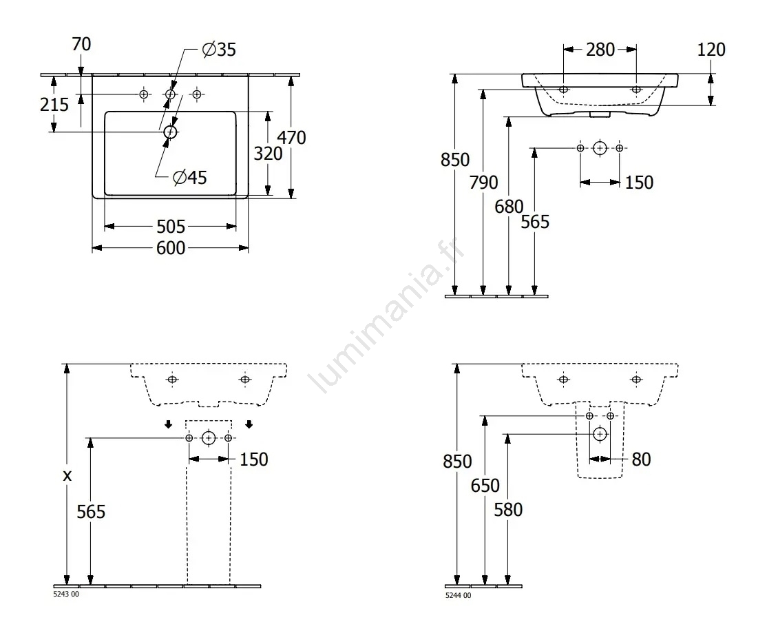 Villeroy & Boch 4A706001 - Lavabo suspendu SUBWAY 3.0 60x47 cm céramique/blanc