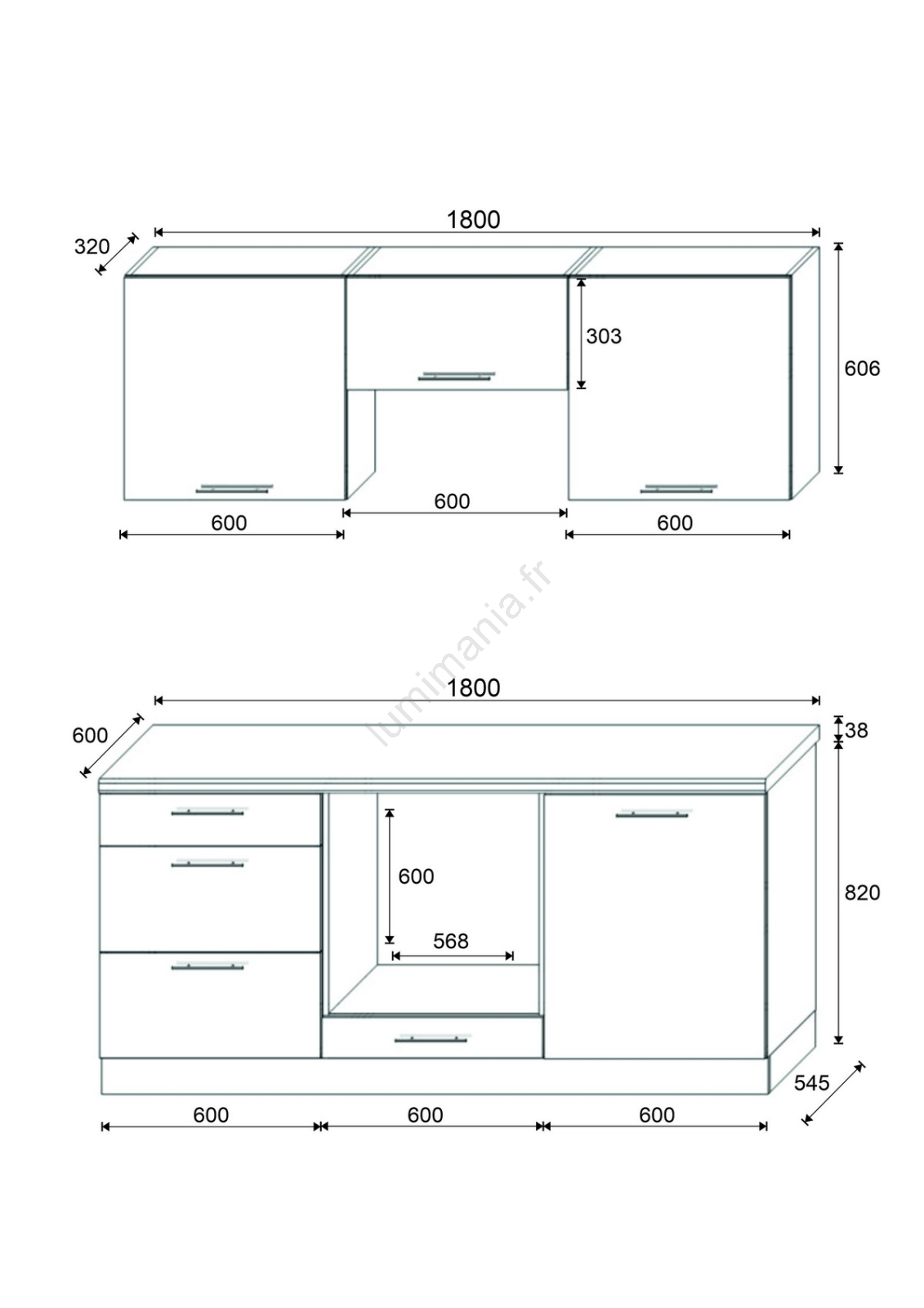 • L'agencement des meubles est modulaire, vous pouvez personnaliser la cuisine selon vos préférences.