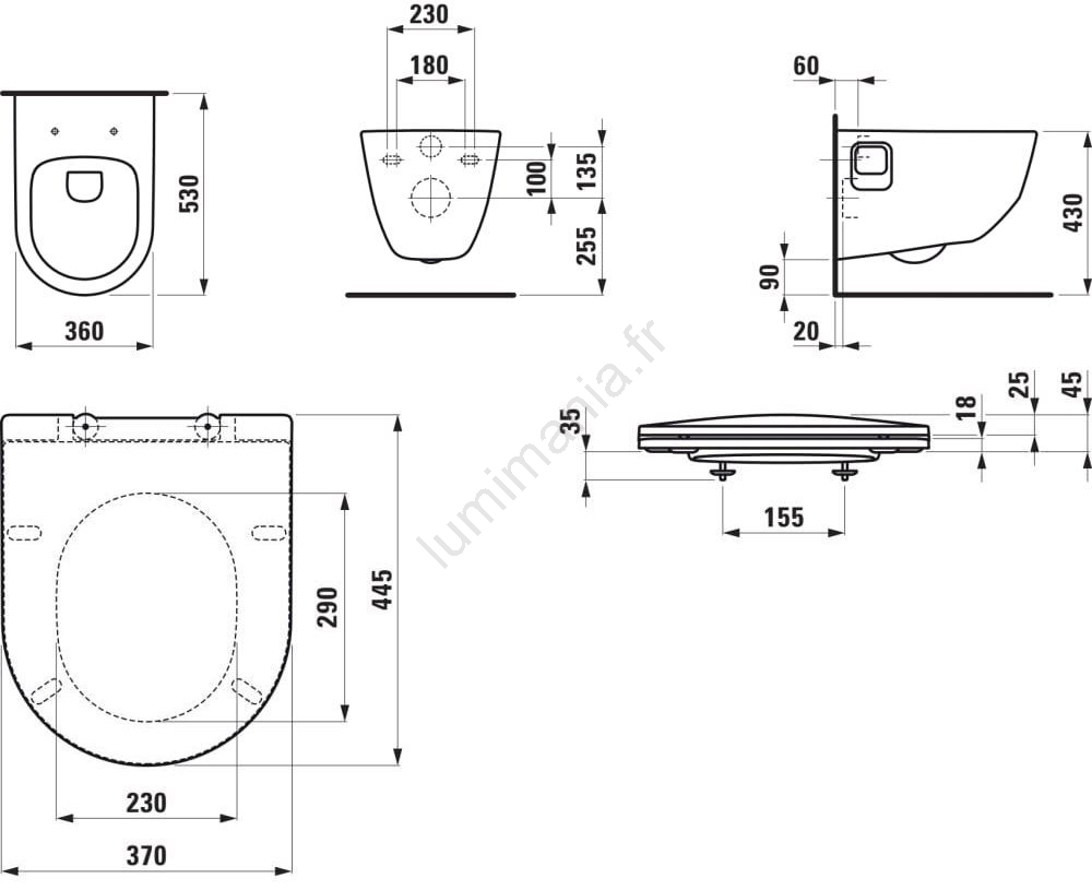 WC suspendu PRO + abattant WC SoftClose PRO + bouton de chasse d'eau à double commande DUAL LIS + module d'encastrement + patin isolant