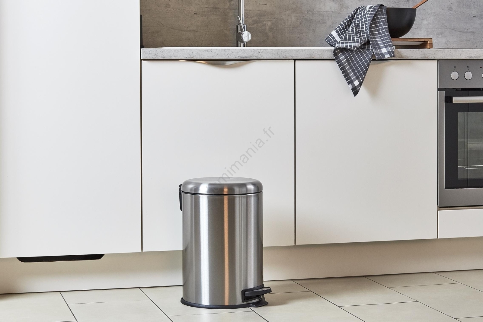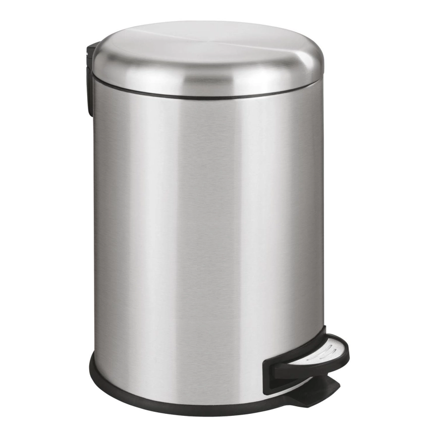 • Poubelle à pédale élégante en acier inoxydable mat au design moderne.