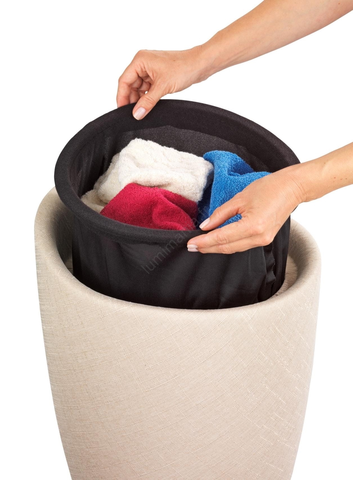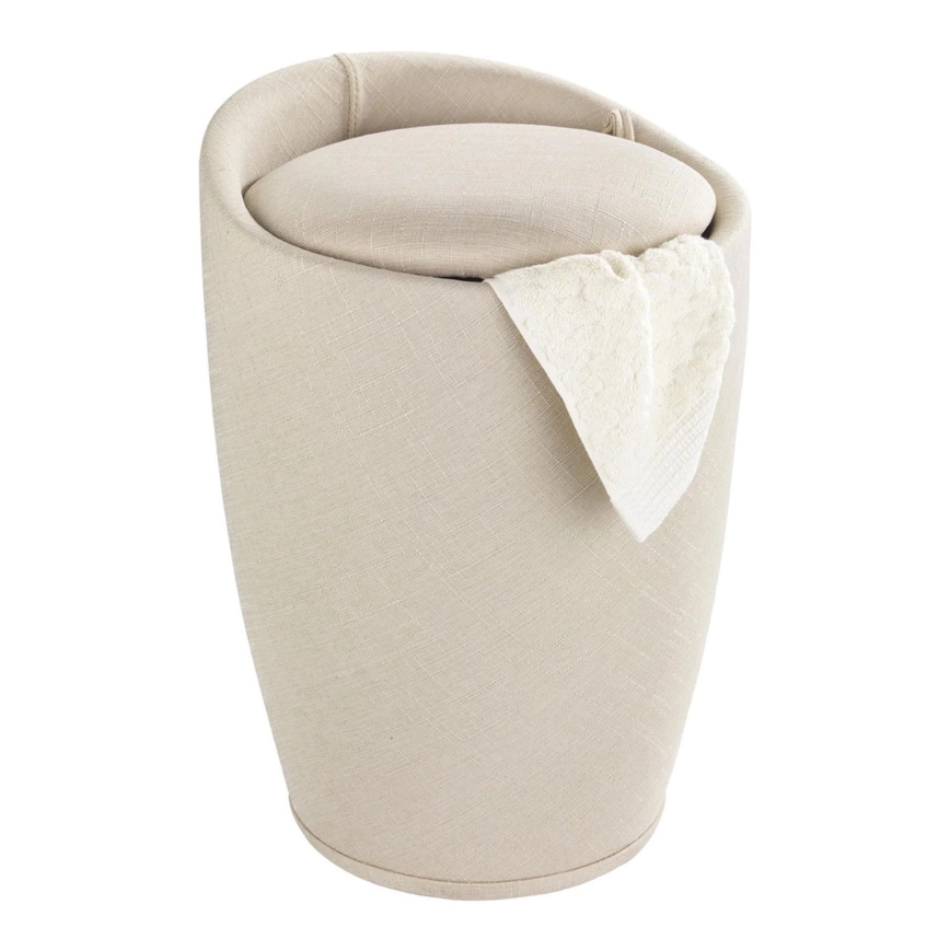 • Tabouret de salle de bain élégant avec revêtement textile moderne beige aspect lin.