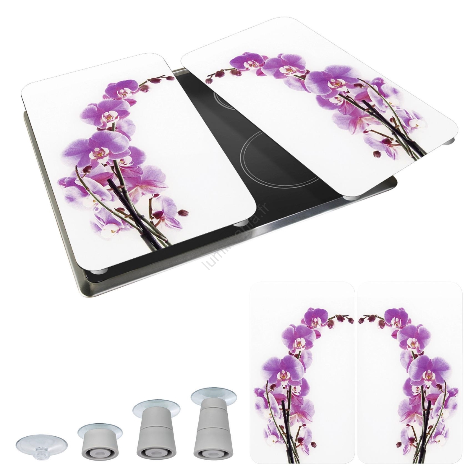 • Caches universels pour plaque de cuisson, lot de 2, à motif d'orchidée.
