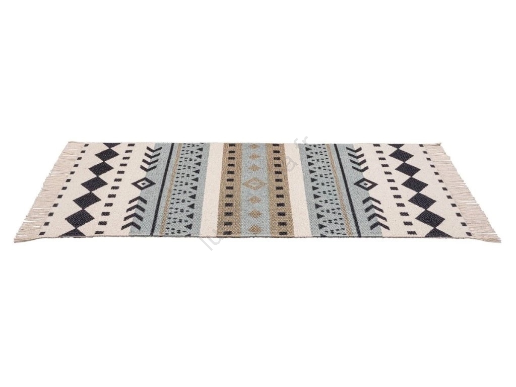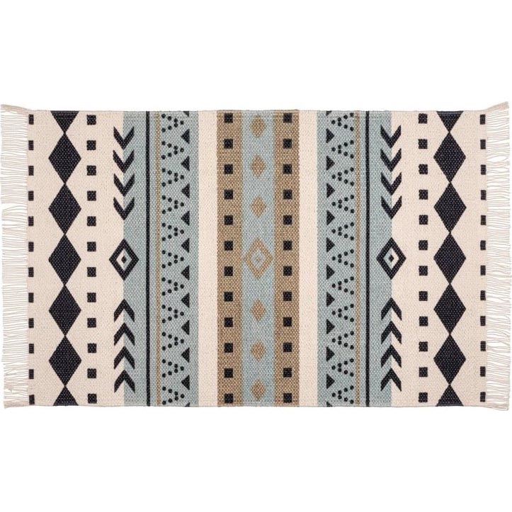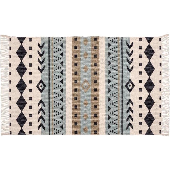 • Design ethnique élégant aux motifs géométriques en bleu, beige et noir.