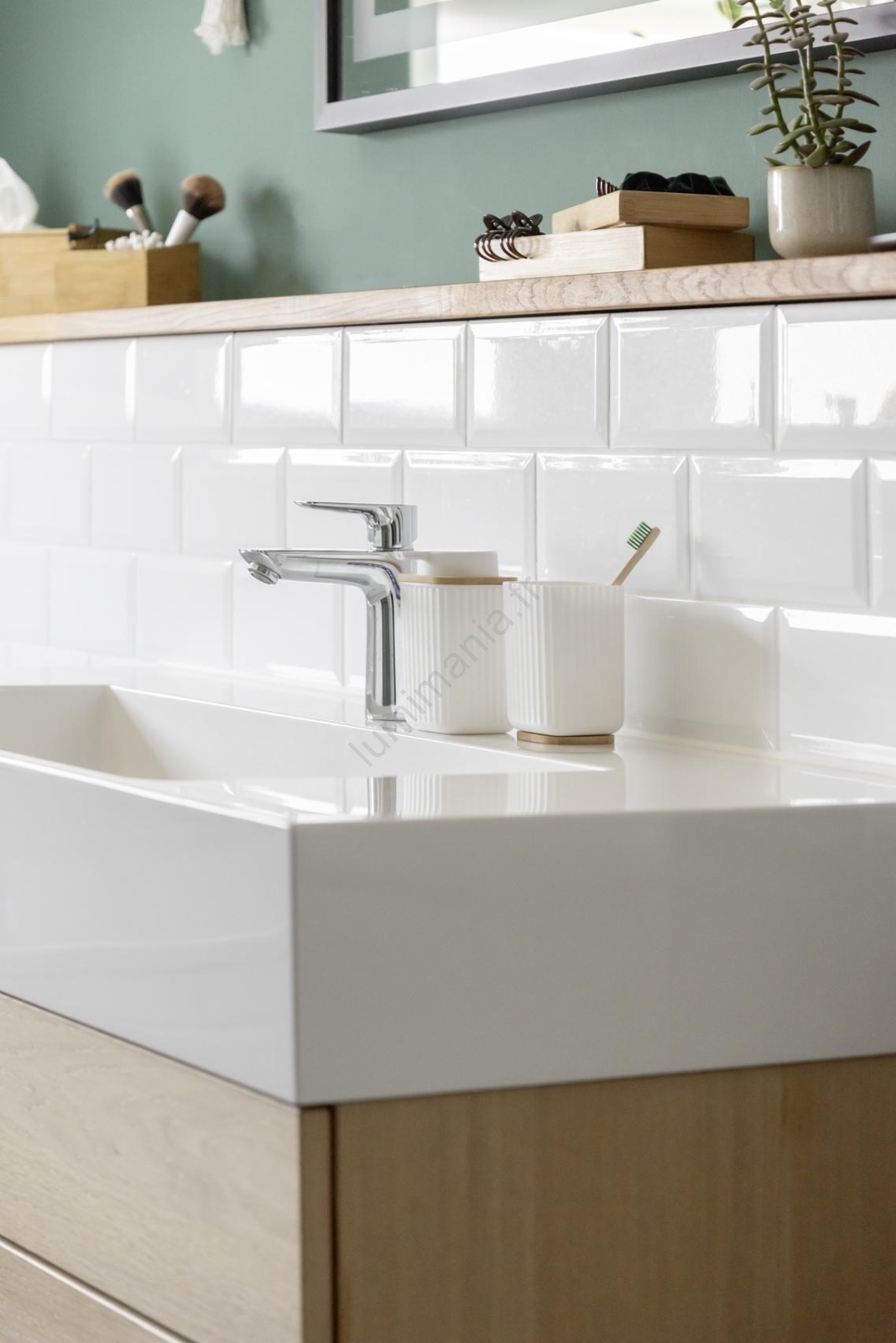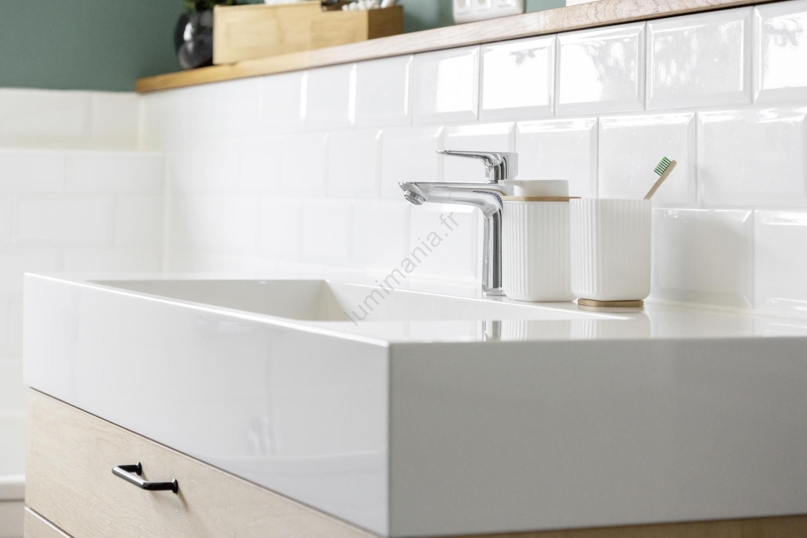 • Accessoire élégant qui s'intègre parfaitement au lavabo ou sur une étagère de salle de bains.