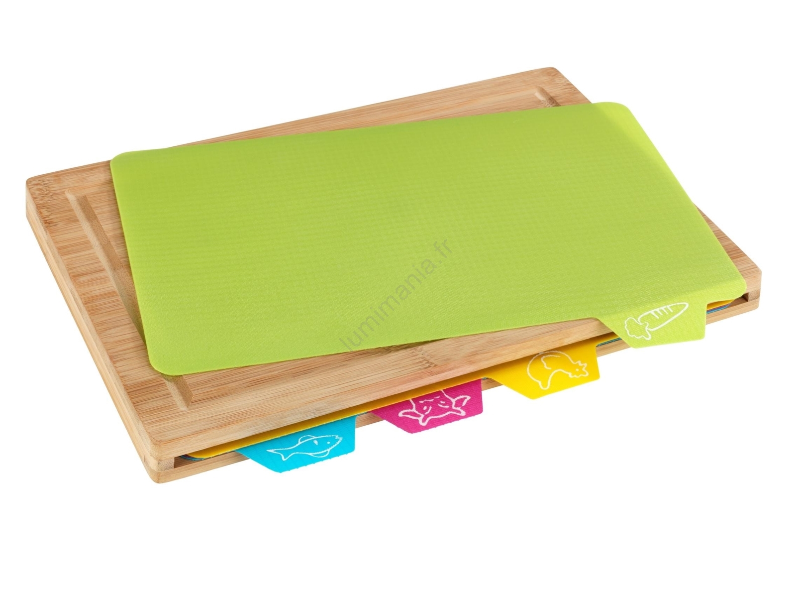 • Planche à découper en bambou pratique avec rigole périphérique pour récupérer les jus.