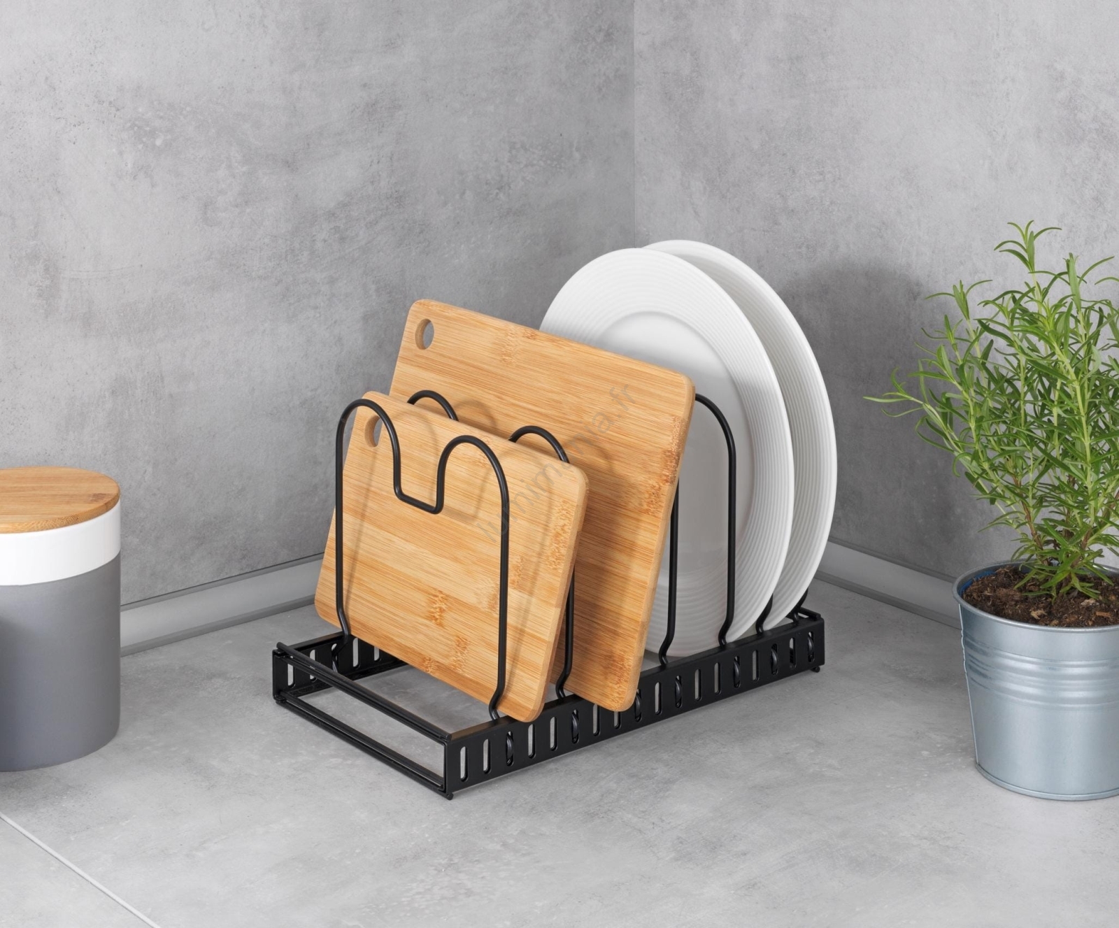 • Permet un rangement économique et ordonné des couvercles, poêles, plaques de cuisson ou planches à découper.