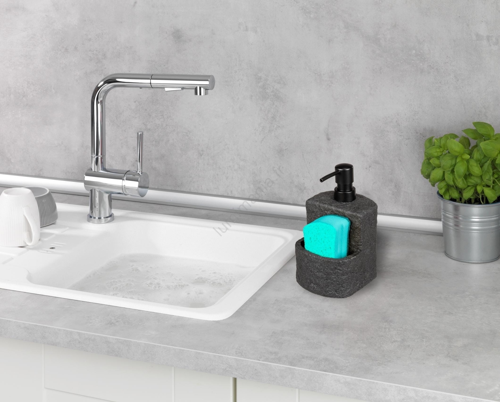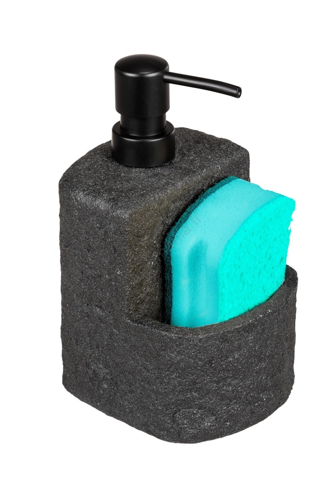 • Distributeur élégant pour liquide vaisselle au design moderne effet pierre noire.