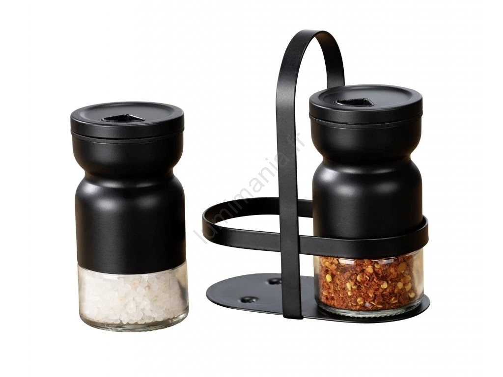 • Ensemble d'épices élégant en 3 pièces comprenant deux pots à épices et un support pratique.