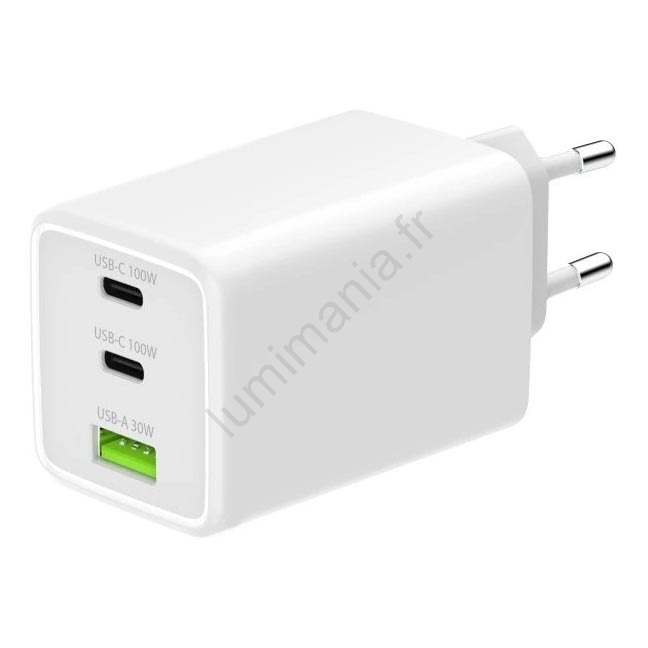 • Le chargeur secteur GaN 100 W est compact, extrêmement puissant et résistant à la surchauffe, idéal pour la recharge rapide des appareils modernes.