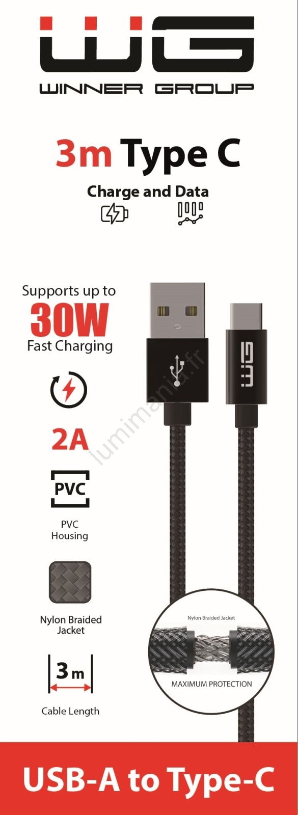Winner Group - Câble USB USB-C / USB-A 30 W 3 m noir
