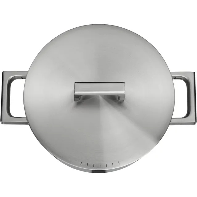 • Les casseroles sont fabriquées en acier inoxydable Cromargan®, résistant à la corrosion, aux rayures et aux acides — le matériau est stable et adapté à une utilisation prolongée.