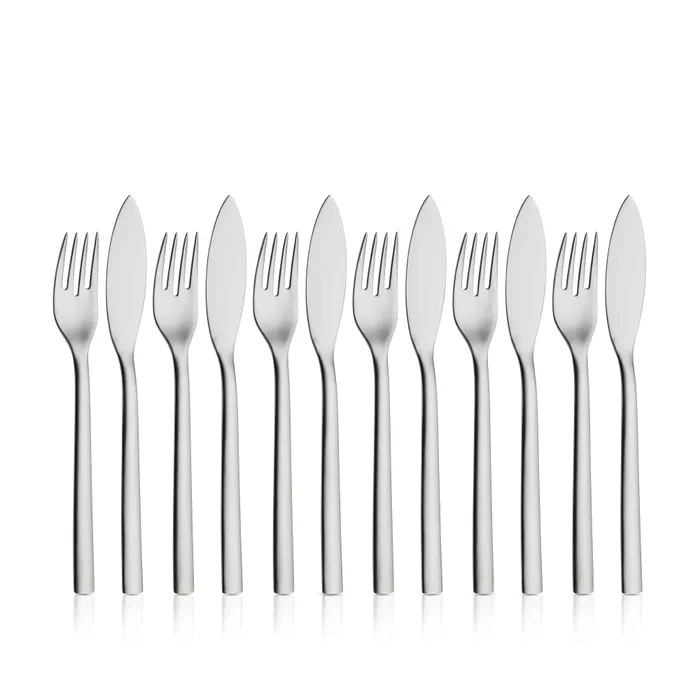• Ensemble spécial de 12 couverts conçu pour le service du poisson – comprend 6 couteaux et 6 fourchettes.