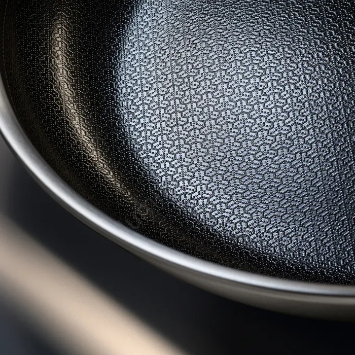 • Une technologie hybride unique associe la performance de l'acier inoxydable au confort d'un revêtement céramique antiadhésif pour des saisies exceptionnelles et un nettoyage facile.