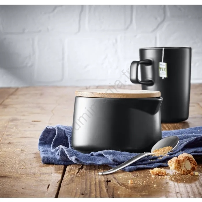 • Son corps est réalisé en grès noir au rendu rustique et délicat, offrant une esthétique raffinée et une capacité d'environ 230 ml, suffisante pour stocker une quantité généreuse de sucre.