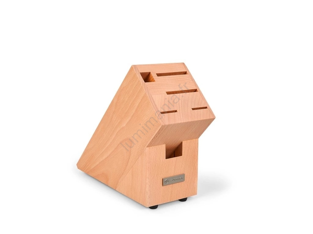 • Le bloc à couteaux est en hêtre et offre des emplacements pour 4 couteaux, un fusil à aiguiser et des ciseaux de cuisine.
