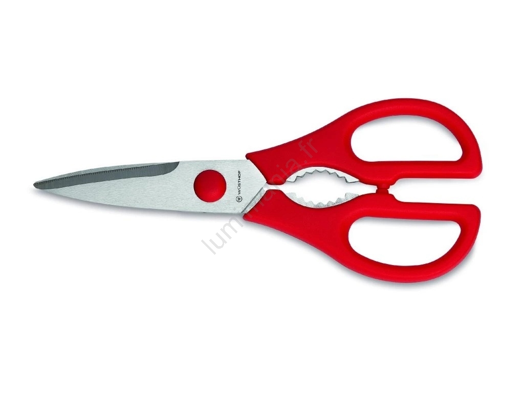 • Le set inclut un affûteur "pull-through" pour un affûtage rapide et facile, ainsi que des ciseaux de cuisine multifonctions (rouges, 21 cm).
