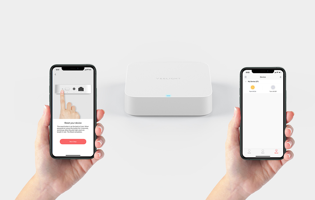 • Vous pouvez utiliser la passerelle intelligente pour faciliter le contrôle des luminaires de la série Mesh (Downlight, Spotlight) ou de l'ampoule Yeelight T43.