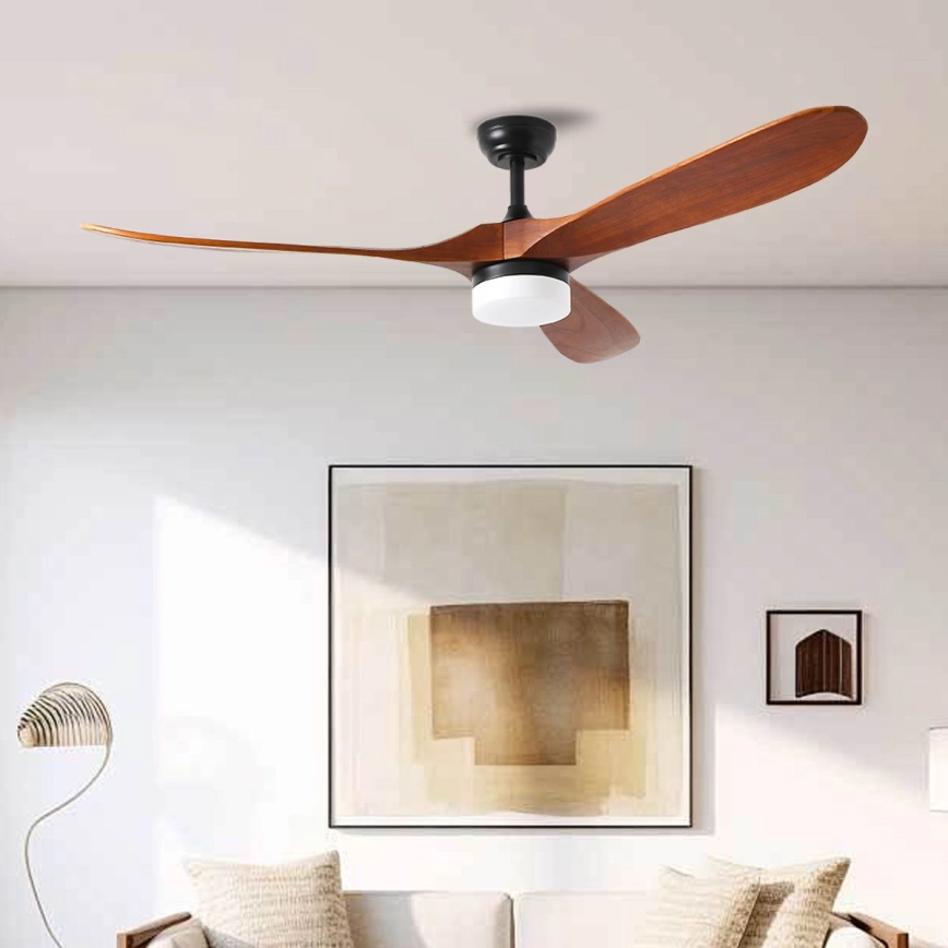 • ZEVENTI - Ventilateur de plafond LED GINOSA LED/18W/230V 3000-6000K Wi-Fi Tuya noir/chêne + télécommande