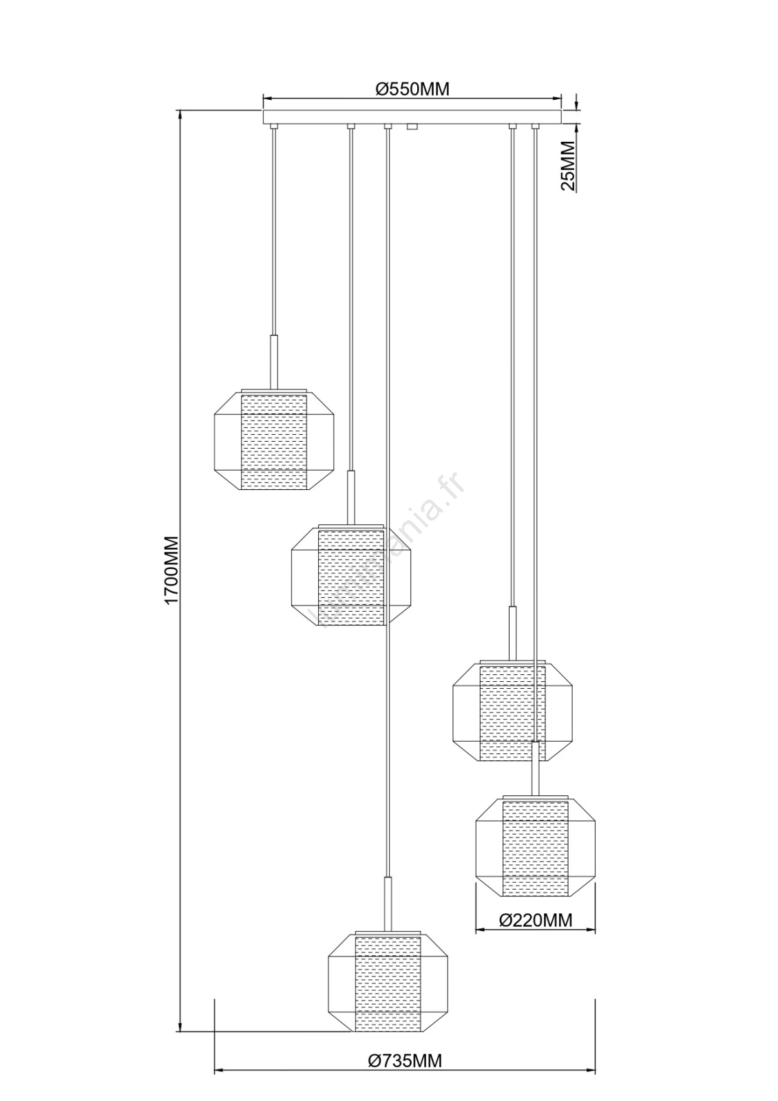 Zuma Line - Lustre suspendu sur câbles 5x E27/25W/230V Ø 73 cm, doré/noir caractérise un design agréable et fonctionnel.  Une ampoule à culot E27 convient pour ce luminaire. Ici, vous pouvez acheter d'autres ampoules à des prix avantageux. Vous aurez un ajout intéressant dans votre intérieur.